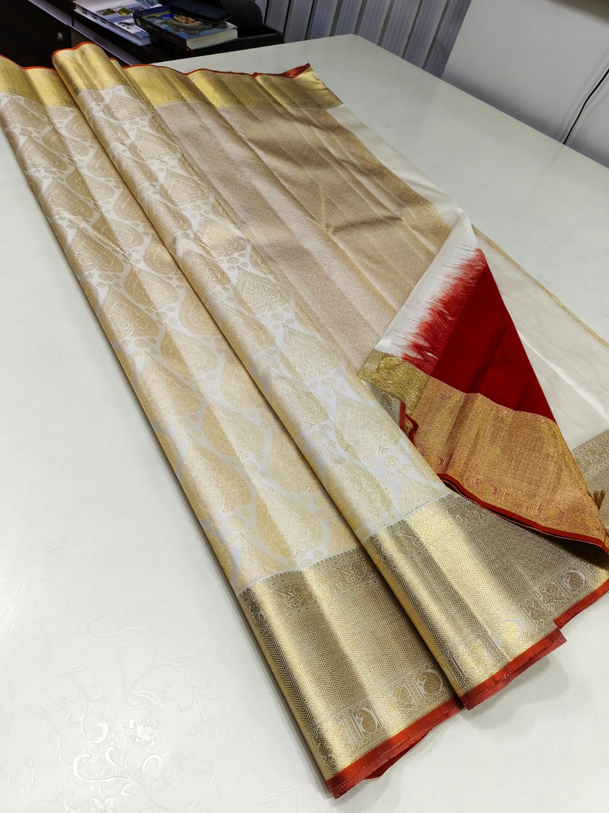 Colour: Cream And Golden Border Kanchipuram Silk Saree